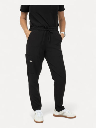 Women’s Black Cargo Scrub Pants – 10 Pocket Eco-Friendly Fabric Tapered-Leg Flattering Pants