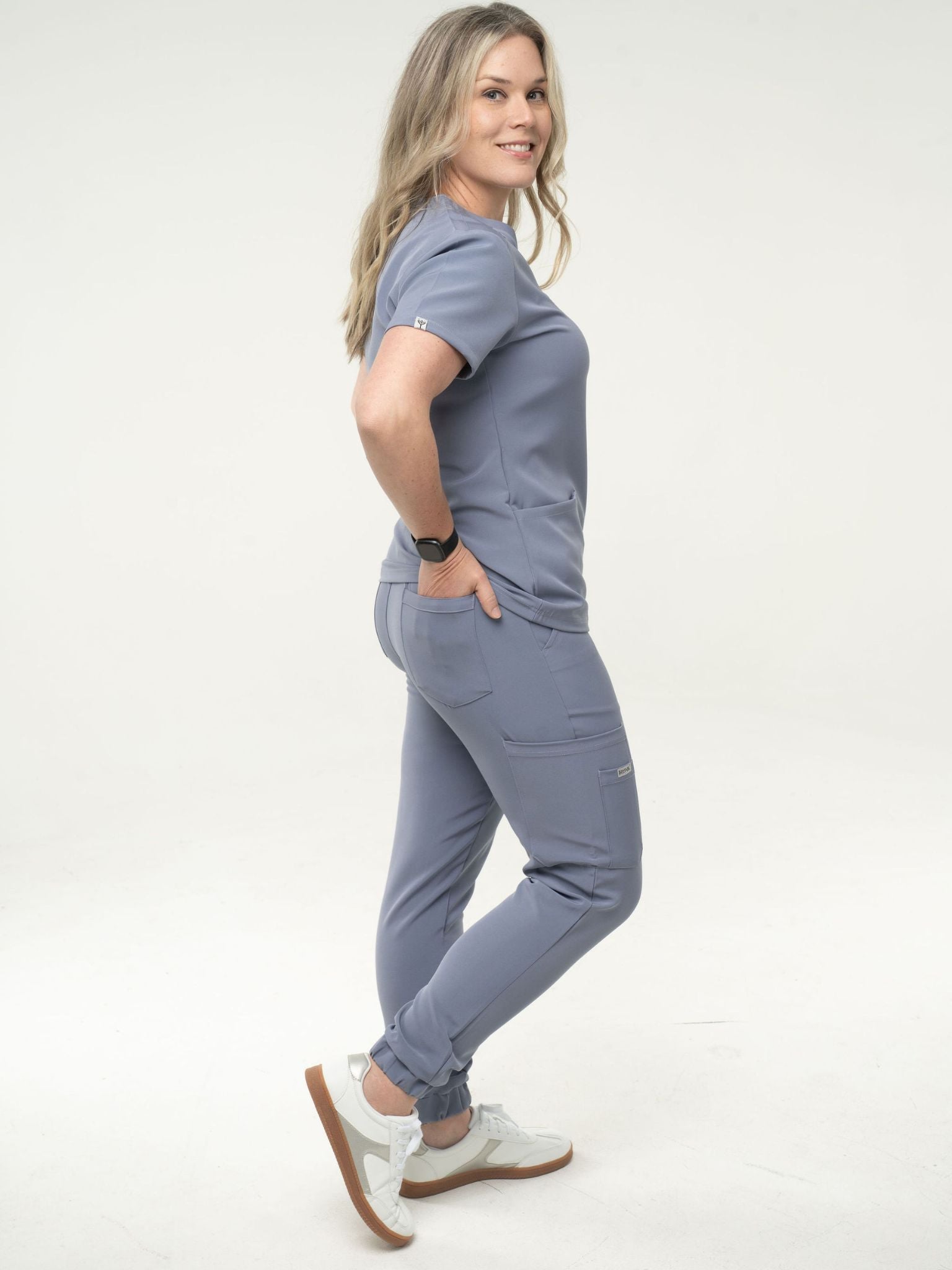 Women’s Twilight Sky Blue Scrub Set with Joggers – 3 Pocket Top & 10 Pocket Joggers Eco-Friendly Fabric Flattering Uniform