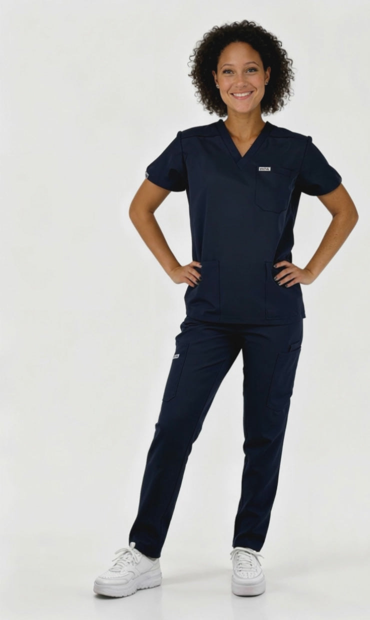 The IRONIK Navy Blue Cargo Scrub Pants are your go-to for a clean, confident look that works anywhere, from hospitals and clinics to high-end spas. With a tapered-leg silhouette and smooth, hemmed finish, they offer timeless style with a touch of modern tailoring.